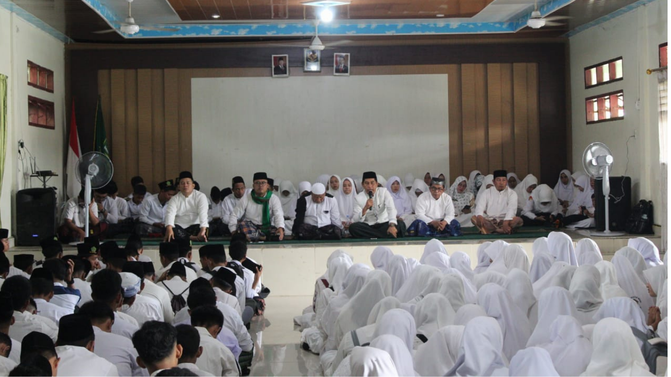 Batubara (Humas). Dalam rangka menyambut momentum Hari Santri Nasional tahun 2025, keluarga besar Madrasah Aliyah Negeri Batubara menggelar kegiatan doa bersama dan istighosah yang berlangsung penuh khidmat di aula madrasah, Selasa (21/10). Kegiatan ini diikuti oleh seluruh dewan guru, tenaga kependidikan, dan peserta didik dari berbagai tingkatan kelas dengan penuh antusias dan semangat keislaman. Kenakan seragam islami, kegiatan dimulai dengan pembacaan ayat suci Al-Qur’an oleh salah seorang siswa, disusul dengan dzikir bersama, shalawat, dan istighosah yang dipimpin oleh Ustad Zainal Arifin guru. Lantunan doa dan dzikir menggema di seluruh area madrasah, menciptakan atmosfer yang menyejukkan dan menyentuh hati.